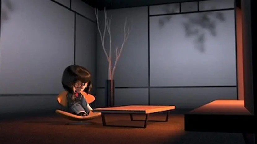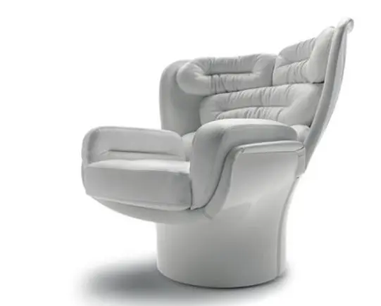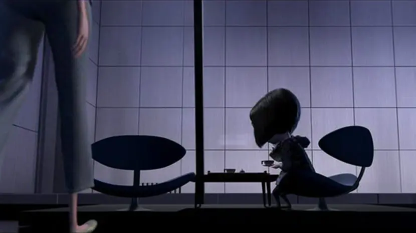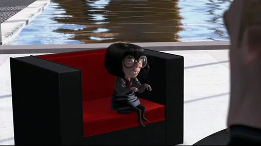 Inside, Bob Parr aka Mr Incredible, takes a briefing seated in a chair reminiscent of the Joe Colombo Elda chair (1965).