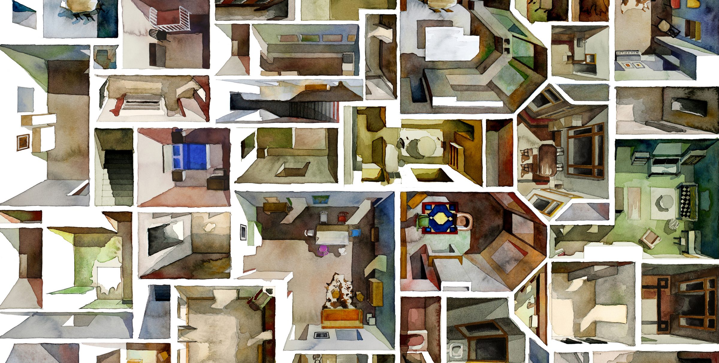 The ground and first floor of the London house in Phantom Thread. Film set floor plan and set decoration details painted by Floor Plan Croissant. Art prints available from Society6F&F: Your painting approach is full of character and sensitivity adding a real individuality to the works. Is there any reason you choose to paint these as loose but careful watercolours rather than say, graphic vector representations?