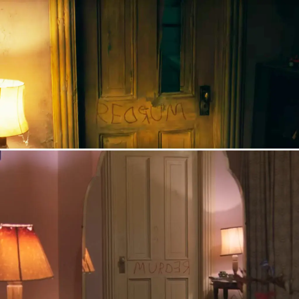 No reference to the The Shining would be complete without ‘REDRUM’ handwritten in red on a door. Seen reflected in the mirror in The Shining it reveals the true meaning: ‘MURDER’. Flanagan however, has decided to show the words reading as “REDRUM” when seen from the same angle of the room rather than when reflected in the mirror. The door in Doctor Sleep also looks somewhat decayed and old, implying that this is not a flashback and that Danny will once again return to the real Overlook Hotel to face his demons.