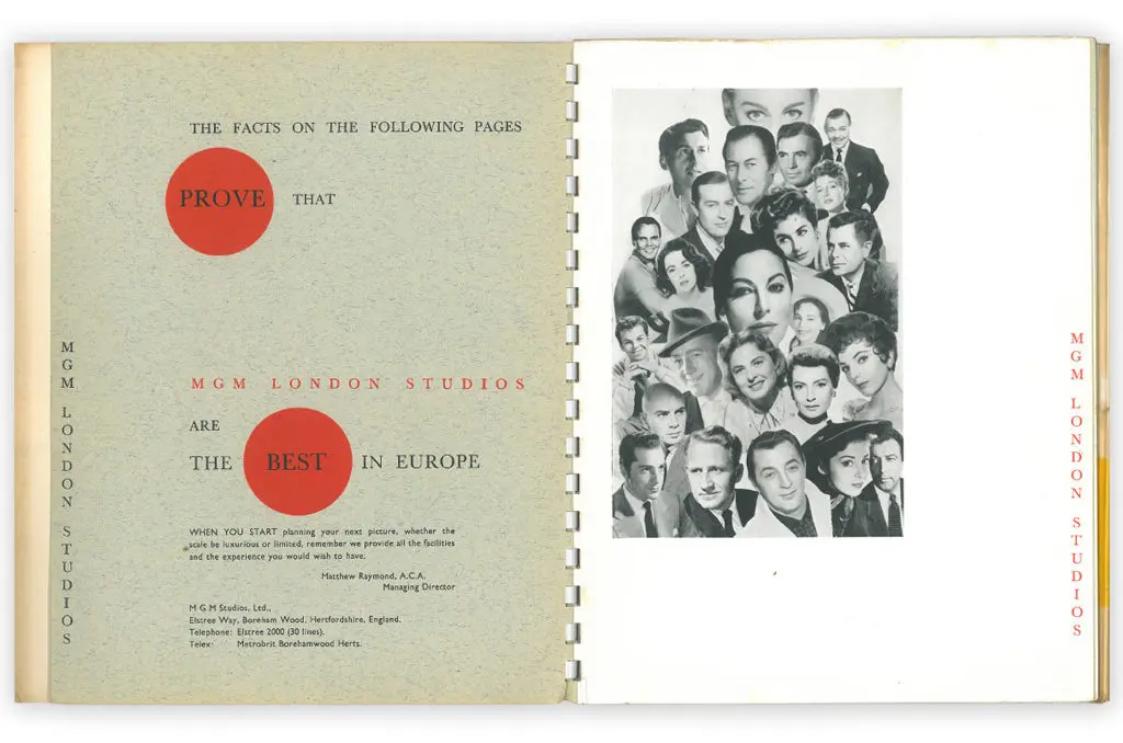 This brochure was produced in 1959 when the studio was undergoing a change in direction. There had been a shake-up of the M-G-M organisation in the United States and the future of the studios had been in doubt – closure was a possibility.