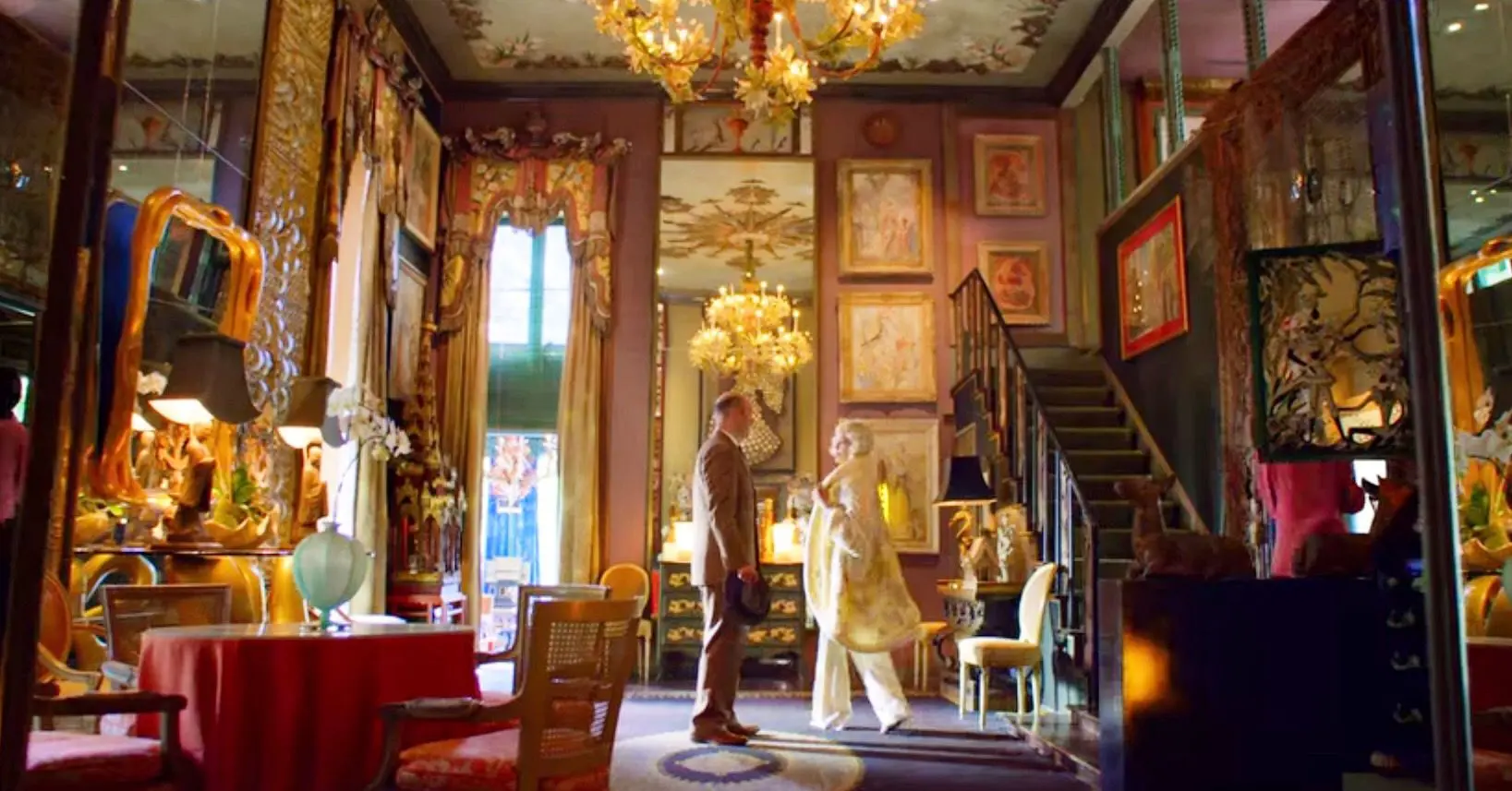 More is more! The former LA home of Hollywood designer Tony Duquette known as ‘Dawnridge‘ is the setting for the glamorous eccentric Lenore Osgood’s (Sharon Stone) home in Ryan Murphy’s Ratched.
