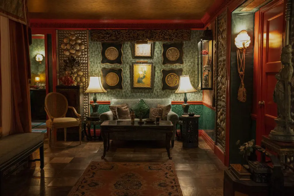 After Duquette died in 1999, his friend, longtime business partner and design collaborator of 30 years Hutton Wilkinson bought the property to save his legacy and redecorated the house with Duquette’s work. They also built the exotic Indian temple in the garden featured in the Ratched series.