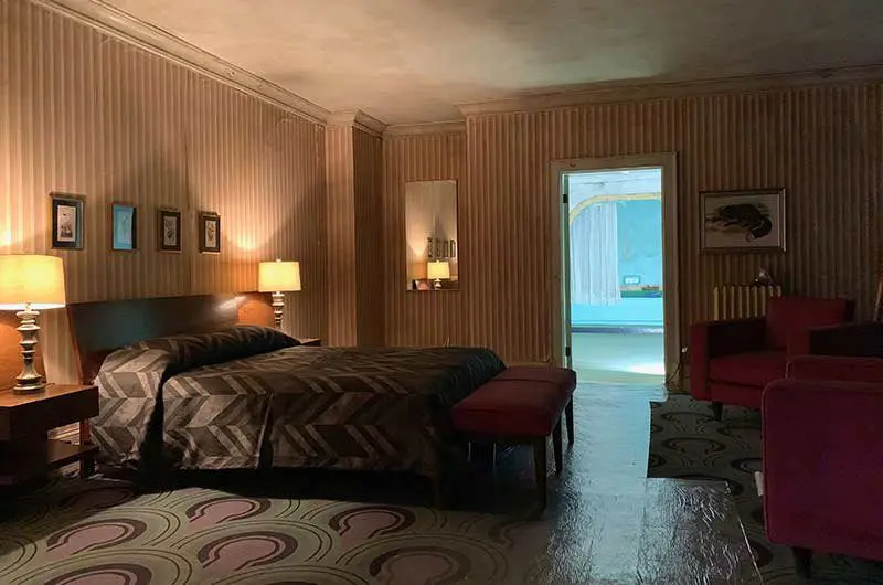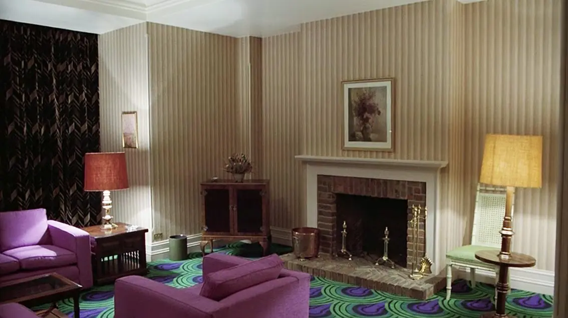 The fireplace area of Room 237 in The Shining‘s Overlook Hotel