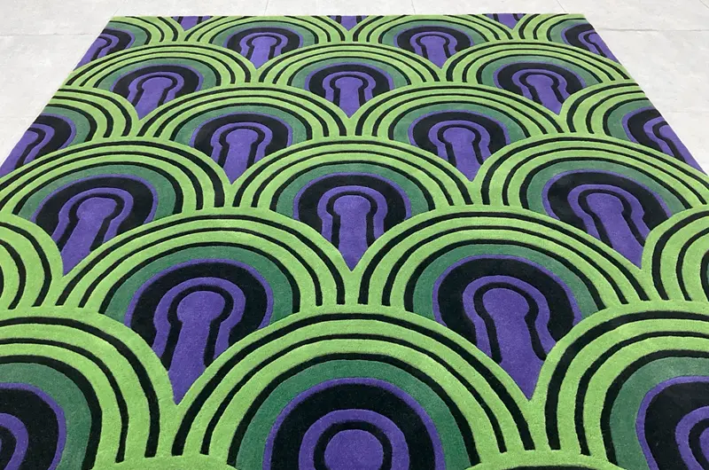 Shop NowWe are thrilled to present the bold purple and green carpet as seen in Room 237 in The Shining’s Overlook Hotel. Now available as beautifully crafted, luxury rugs, runners and wall-to-wall carpet for your own home.