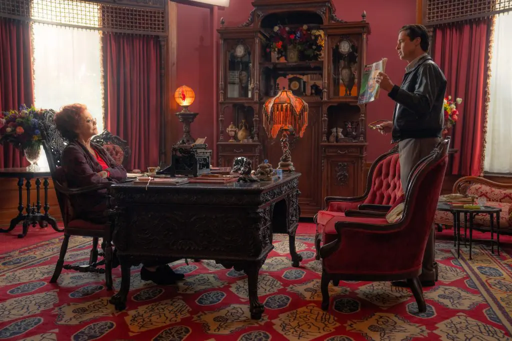 The home of gossip columnist Elinor St. John (Jean Smart) in Babylon was filmed at Pasadena’s Castle Green