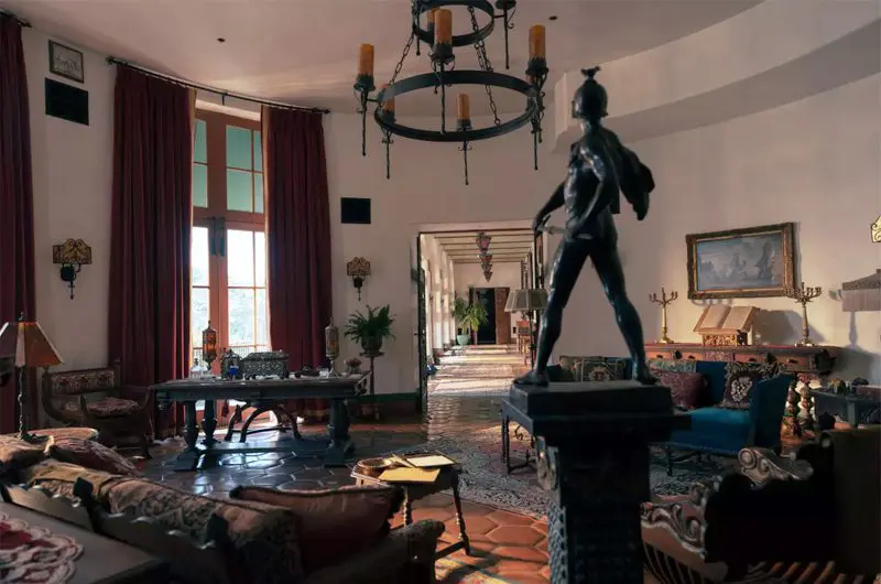 Wallach’s mansion was shot partly at a castle built in 1926 by the real estate developer of Hancock Park, an hour outside Los Angeles, and an extension was built in front of the garage to serve as the entrance to the ballroom.