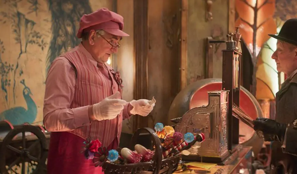 Finding the perfect yet ambitious location in the belle époque shopping arcade, Galeries Gourmet, Wonka encounters challenges as the existing chocolatiers, forming the ‘Chocolate cartel,’ oppose his plans. Slugworth (Paterson Joseph), Prodnose (Matt Lucas), and Fickelgruber (Mathew Baynton) are formidable adversaries who strive to thwart Wonka’s vision.