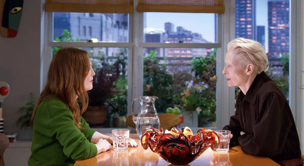 Before arriving at their idyllic Upstate New York retreat, where the story’s most poignant moments unfold, the audience is treated to a glimpse of Martha’s Manhattan apartment, a striking example of sophisticated urban design. With breathtaking views over New York City, the apartment reflects the meticulous choices of production designer Inbal Weinberg and Almodovar’s attention to decor details.