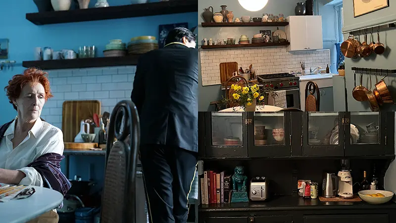Working closely with production designer Katie Fleming, Dellal created an apartment that feels inherited, tactile and real. “We had no budget,” she laughed. “So we used what we had. The rugs, the ceramics, even the bedhead in Kit’s room are mine. It meant the actors weren’t faking it—they were living in a space that already had a story.”