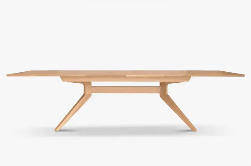 Crafted from a solid wood base with a solid edge veneered top, the Cross Table comfortably seats between six and fourteen people when extended. It is adaptable without ever feeling overworked.