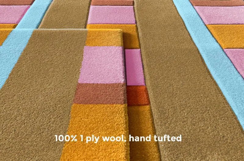 • High-Quality Craftsmanship: Hand tufted and made from 100% 1-ply wool, ensuring durability and a luxurious feel underfoot. Subtle wool ‘carving’ around the colours ensures a crisp line. For large areas, a budget printed nylon version is also available.
