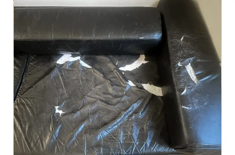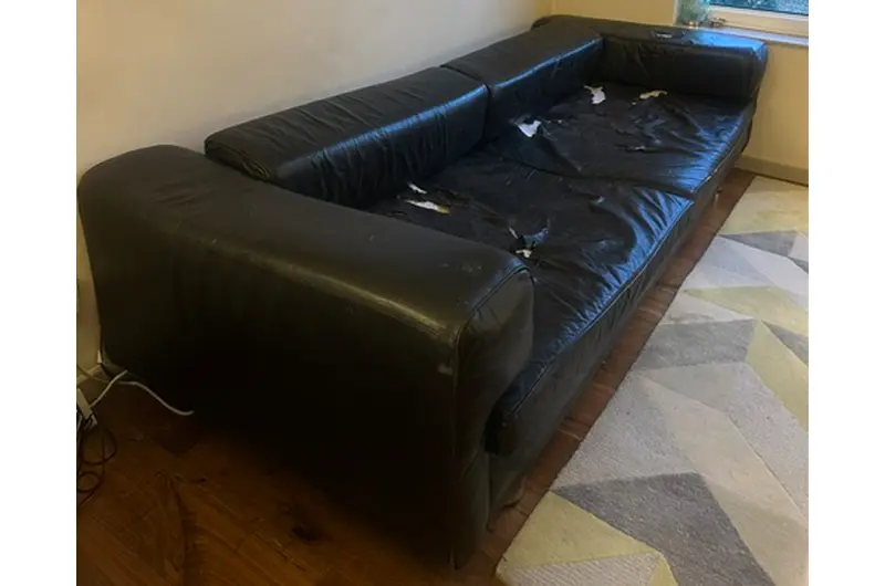 The seating cushions have tears in the top leather as can be seen in the photos and therefore some reupholstery is required.