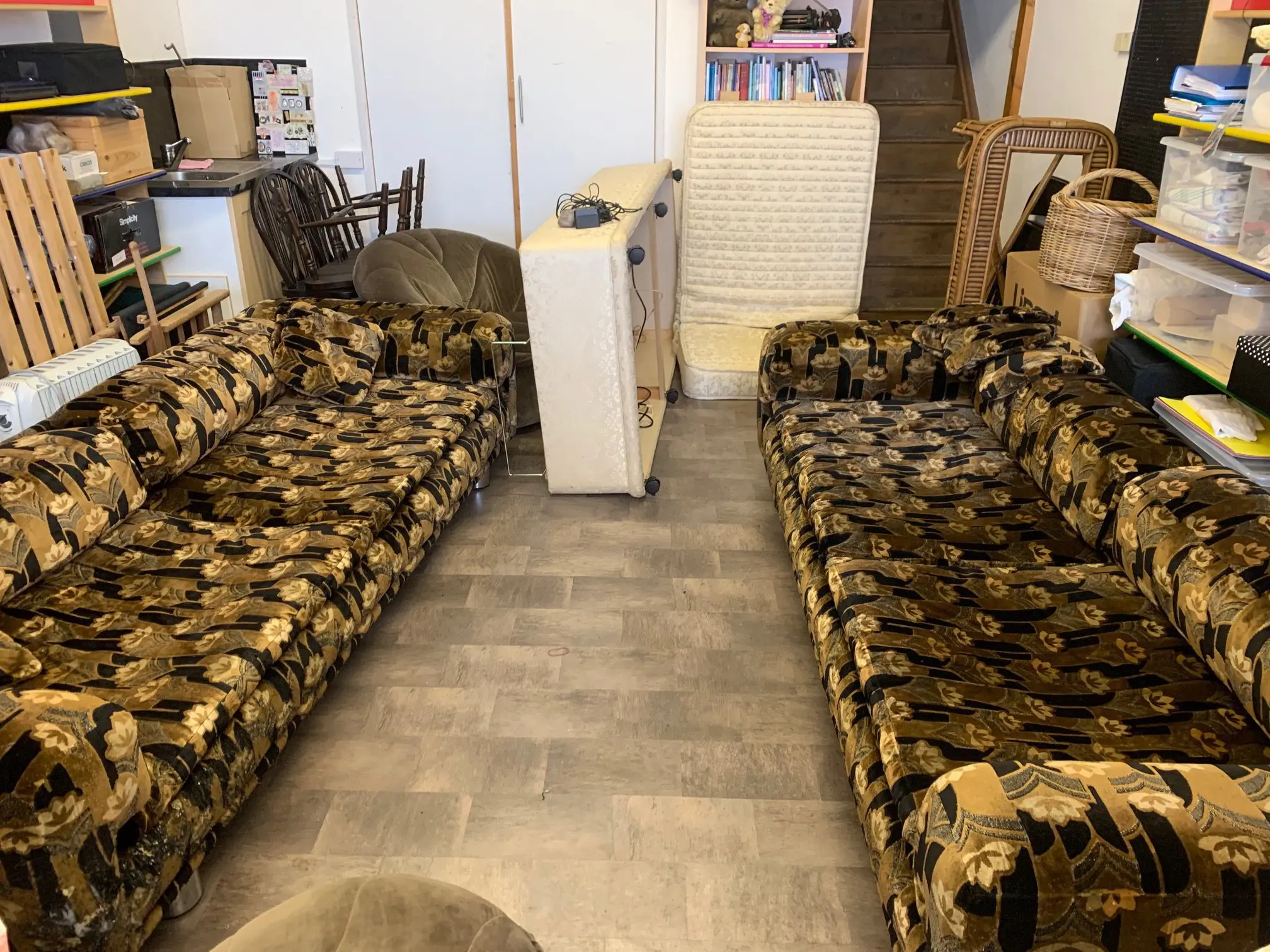 These sofas both need some restoration work and recovering.