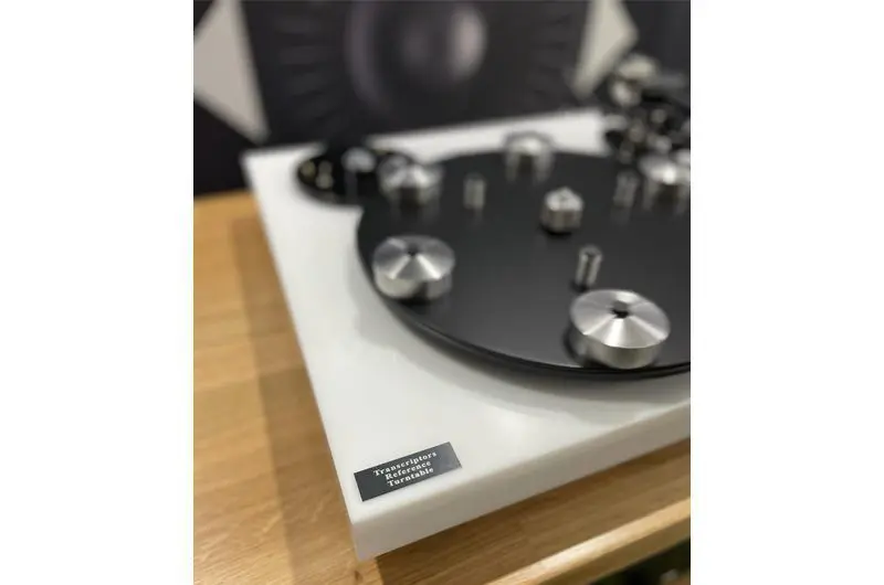 • Plinth 440mm x 420mm x 40mm CNC white acrylic mounted on four sorbothane hemispheres. Optional clear plinth.
