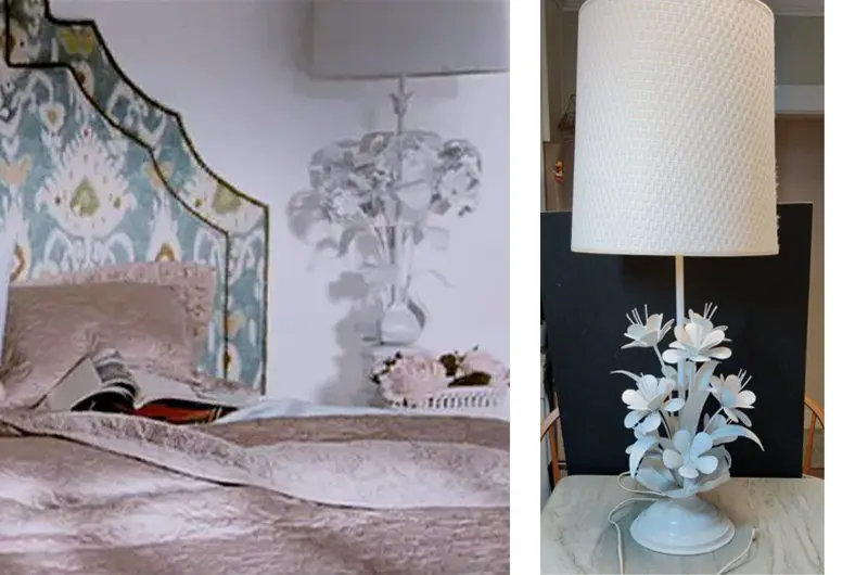 In Charley’s boudoir in A Single Man, the bedside table lamps stand out. They’re exquisite vintage tole lamps adorned with white-painted metal flowers and leaves.