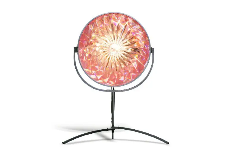The cylindrical shade made of fibre optic composite seems to float under the filigree arch. Twiggy radiates light indirectly both upwards and downwards in a very classic way. A translucent diffuser made of polycarbonate covers the light source on the upper part, while the light is diffused downwards by a polymethacrylic disc equipped with a variety of prisms, guaranteeing a glare-free light effect. The integrated dimmer also allows you to adjust the brightness according to your requirements. Its harmonious light output makes this designer light the perfect light source for lounging next to the reading chair as well as an elegant basic light in the home or in a hotel or restaurant area.